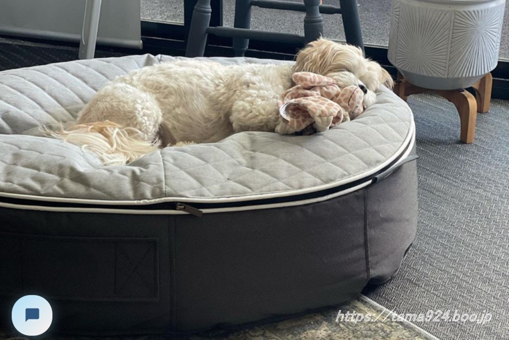 我が家にアンビエントラウンジのドッグ用ベッドが届いた時の様子はこちらで詳しくご紹介していますので、ご参考に是非ご覧下さい!