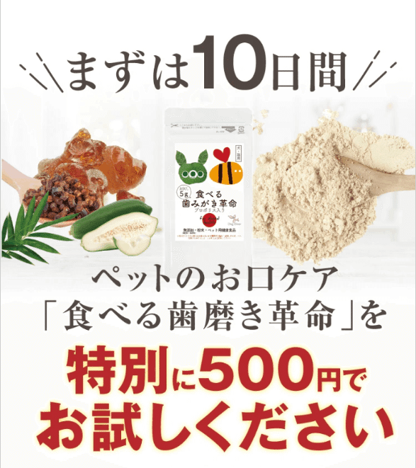 今なら500円のワンコインでお試しできるので、”うちの子”が喜んで食べてくれるのか確認してから商品を購入できるという超お得なデンタルケアのご紹介をします。