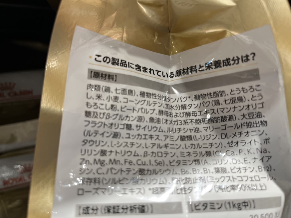 これは、あるメーカーのドッグフードの原材料の表示です。こんなに沢山あるんですよ。
