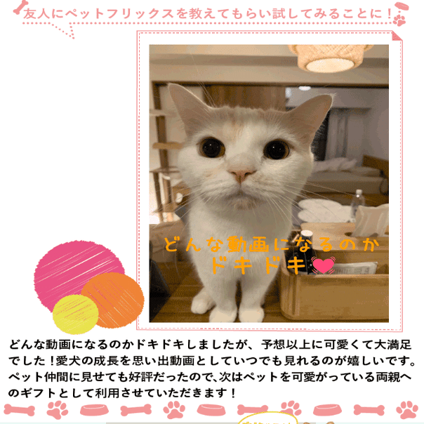 ペットフリックス(PETFLIX)とは、かわいいペットの成長記録など大切な思い出を濃縮された動画に編集してくれるんです。