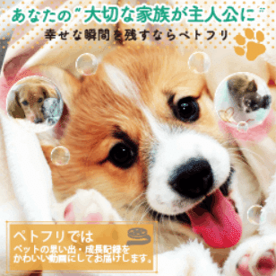 沢山の人に喜ばれている話題の「ペトフリ」です。 わんちゃん猫ちゃんはもちろん、わんちゃん&赤ちゃんペア―やうさぎやハムスターなど可愛いペットの動画を編集してお手元に!
