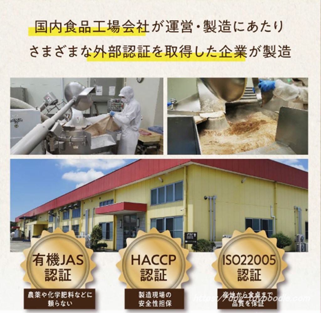 20年以上の実績がある国内食品会社が運営・製造していて、有機JAS認証・HACCP認証・ISO20055認証を取得た厳しい品質管理のもとで製造されているので安心です。